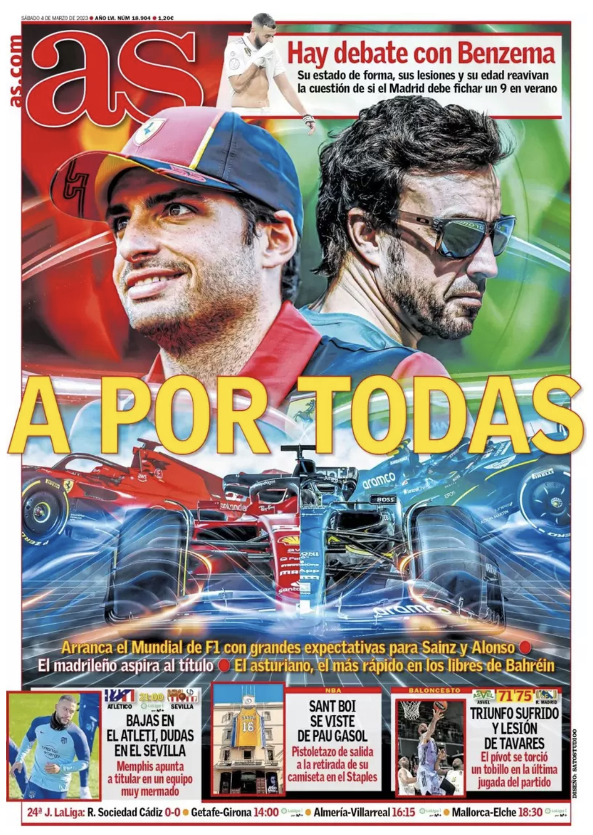 As dedica parte de su portada a Karim Benzema: "Su estado de forma, sus lesiones y su edad reavivan la cuestión de si el Madrid debe fichar un 9 en verano".