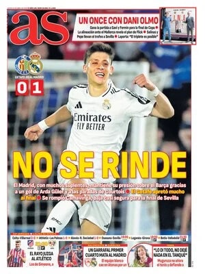 As apunta que "el Madrid, con muchos suplentes, mantiene su presión sobre el Barça gracias a un gol de Arda Güler y a las paradas de Courtois. El Getafe apretó mucho al final. Se rompió Camavinga, baja casi segura para la final de Sevilla".