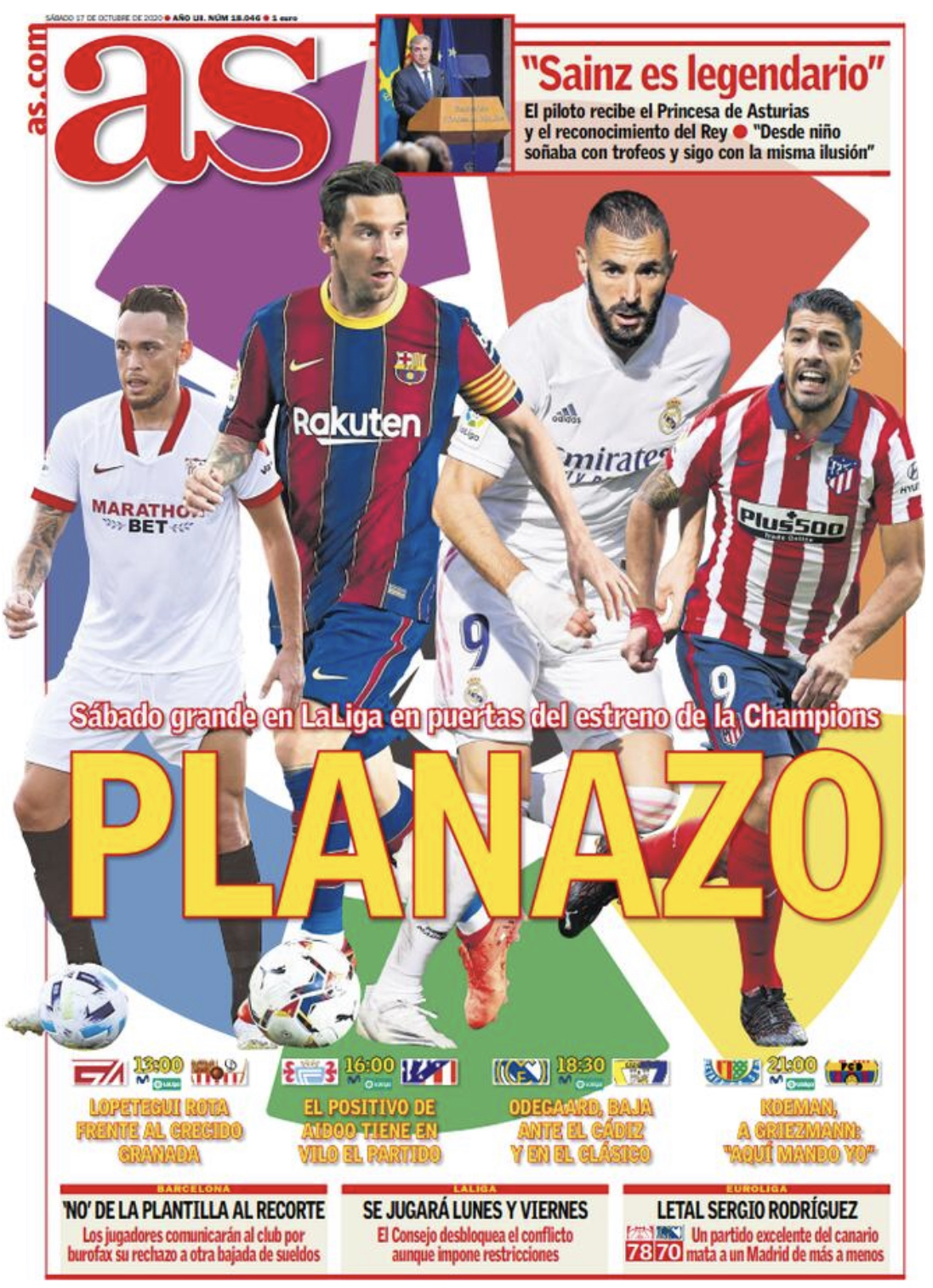 As destaca los importantes partidos que se disputarán este sábado en la Primera División española: "Lopetegui rota frente al crecido Granada, el positivo de Aidoo tiene en vilo el Celta-Atlético. Odegaard, baja ante el Cádiz y en el Clásico, Koeman dice a Griezmann: "Aquí mando yo"".