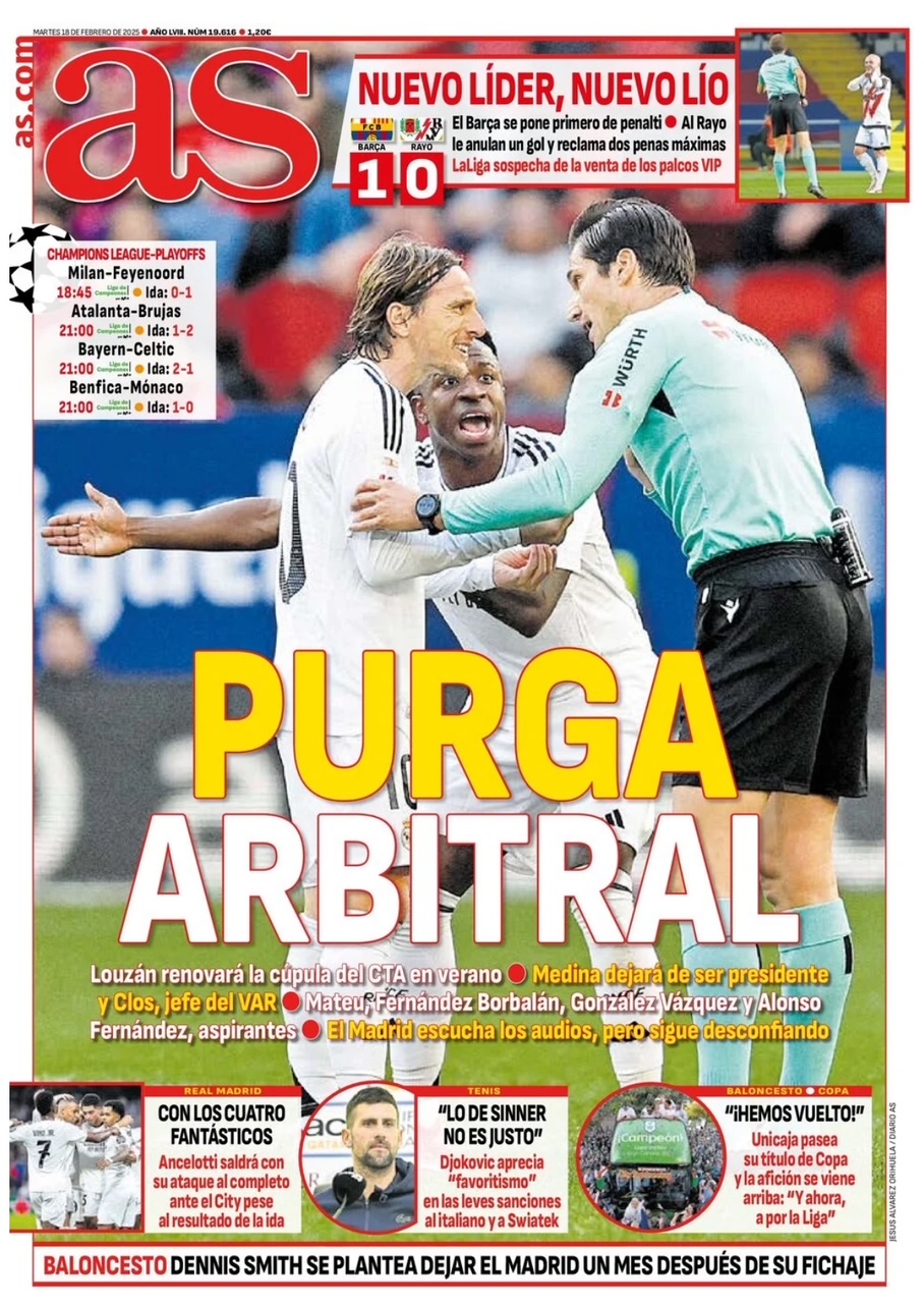As apunta que "Louzán renovará la cúpula del CTA en verano. Medina dejará de ser presidente y Clos, jefe del VAR. Mateu, Fernández Borbalán, González Vázquez y Alonso Fernández, aspirantes. El Madrid escucha los audios pero sigue desconfiando".