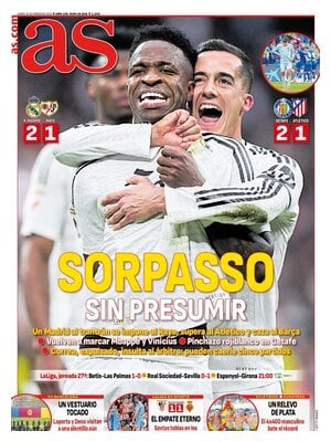 As apunta que "un Madrid al trantrán se impone al Rayo, supera al Atlético y caza al Barça. Vuelven a marcar Mbappé y VinÃcius. Pinchazo rojiblanco en Getafe. Correa, expulsado, insulta al árbitro: pueden caerle cinco partidos".