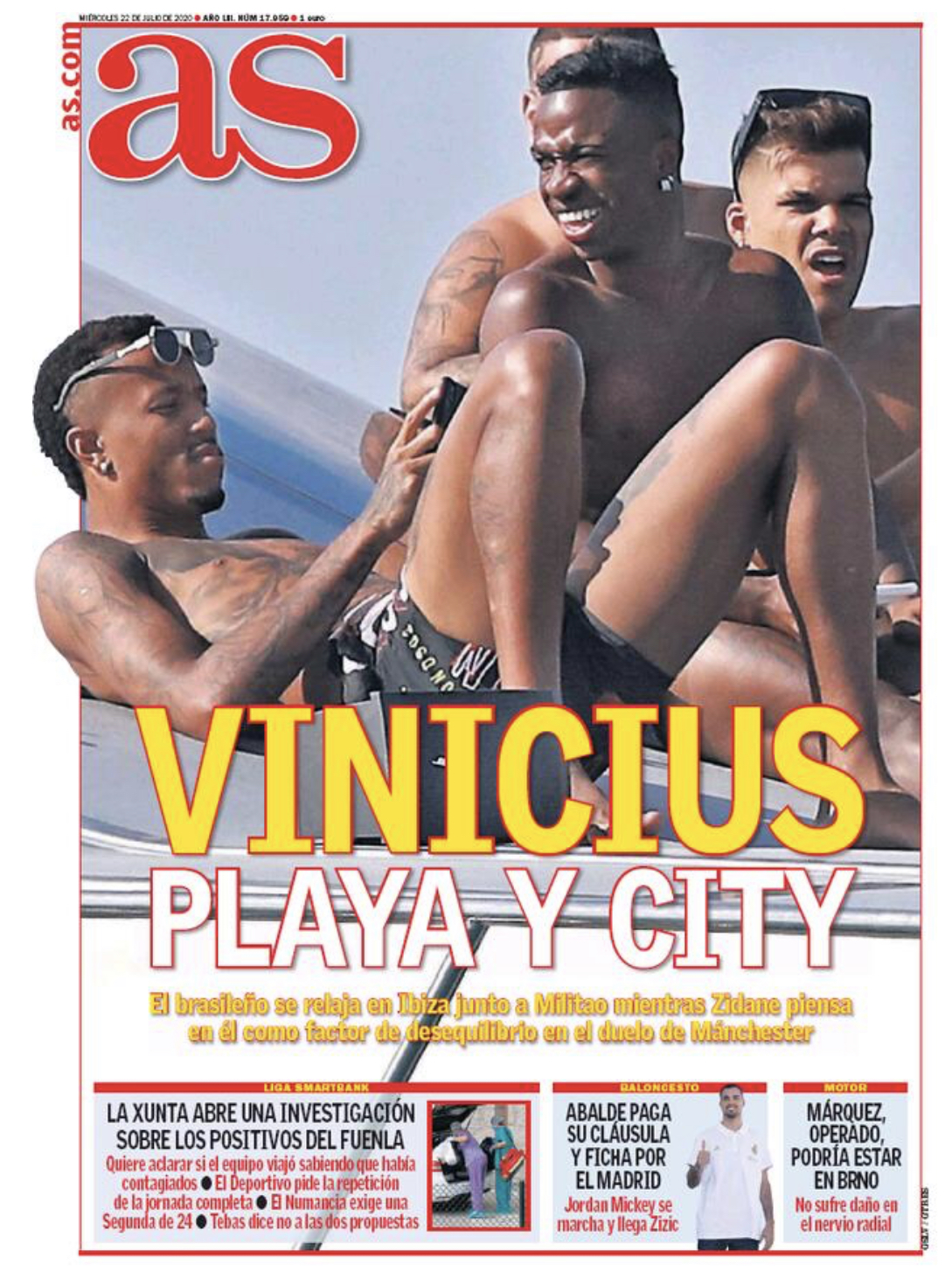 As apunta que "Vinícius se relata en Ibiza junto a Militao mientras Zidane piensa en él como factor de desequilibrio para el duelo de Manchester".