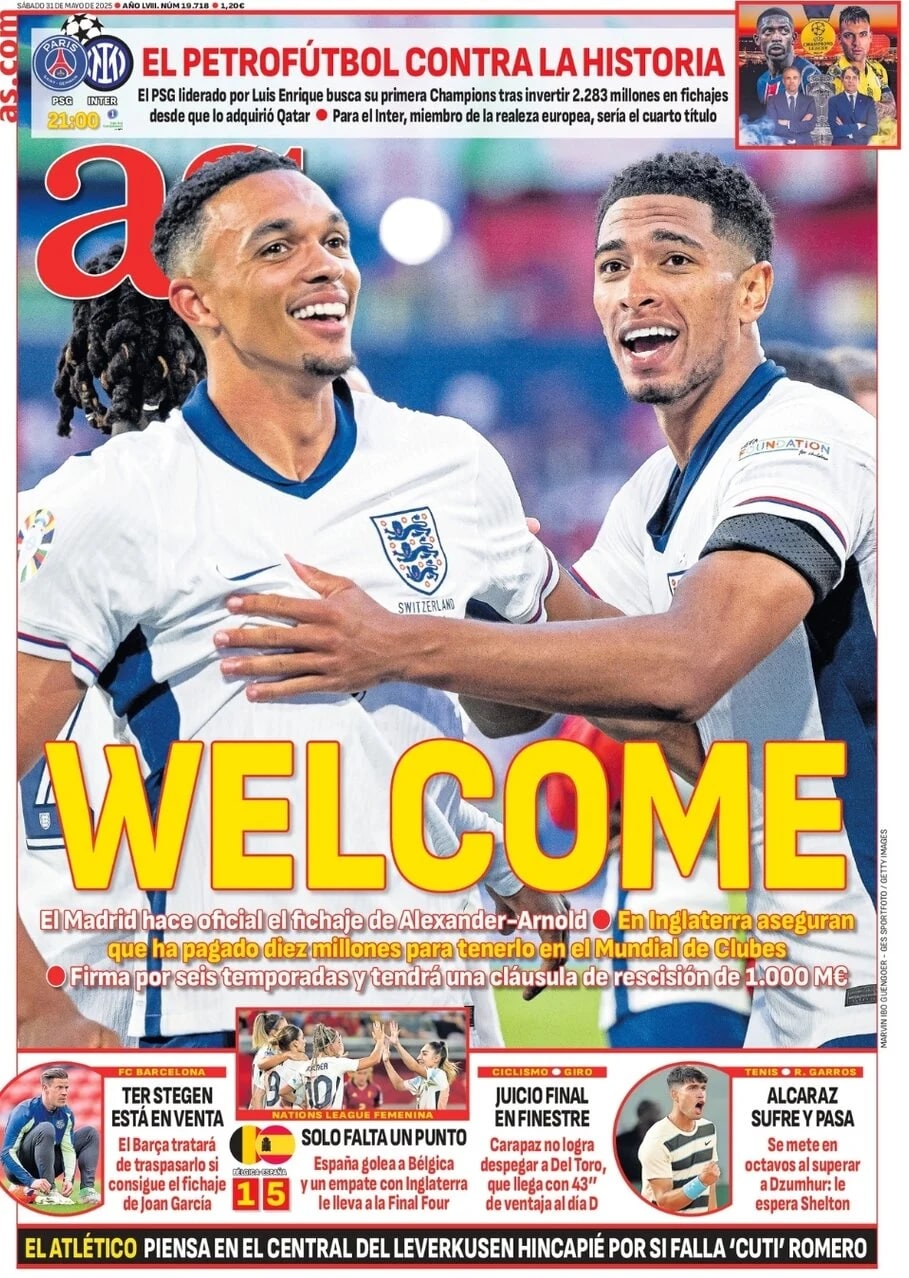 As apunta que "el Madrid hace oficial el fichaje de Alexander-Arnold. En Inglaterra aseguran que ha pagado 10 millones para tenerlo en el Mundial de Clubes. Firma por seis temporadas y media y tendrá una cláusula de rescisión de 1.000 millones de euros".