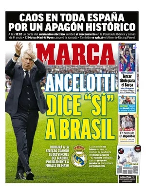Marca apunta que Carlo Ancelotti "dirigirá a la 'Seleçao' cuando se desvincule del Madrid, posiblemente a finales de mayo. La idea del club blanco es que la ruptura se produzca de mutuo acuerdo. El italiano trabajará con un grupo de jugadores que conoce perfectamente".
