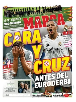 Marca publica que "la expulsión de Correa dio alas a un Getafe que remontó en el añadido al Atlético. El Madrid ganó con goles de Mbappé y Vinícius, pero su juego no convenció".
