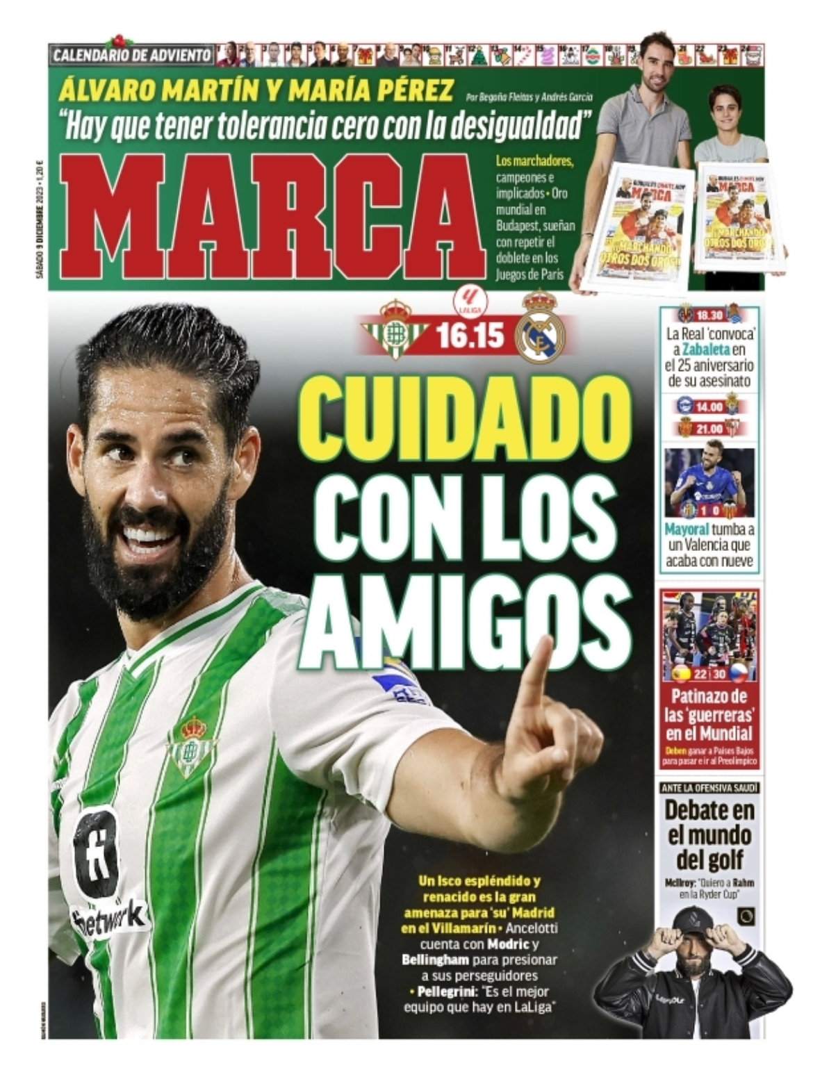 Marca apunta que "un Isco espléndido y renacido es la gran amenaza para 'su' Madrid en el Villamarín. Ancelotti cuenta con Modric y Bellingham para presionar a sus perseguidores".