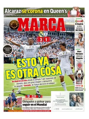 Marca apunta que "un Madrid con diez desde el minuto 7 por expulsión de Asencio dejó una gran imagen y demuestra su pegada. Gonzalo, de nuevo decisivo en ataque".