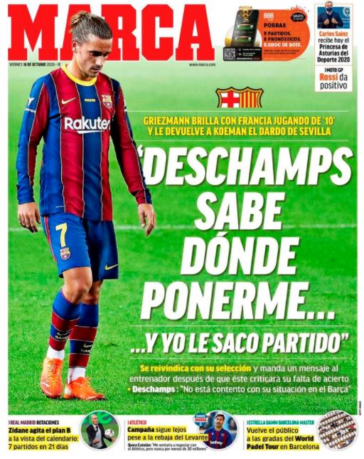 Marca pone el acento en las palabras de Antoine Griezmann tras el Croacia-Francia: "Le devuelve a Koeman el dardo de Sevilla, se reivindica con su selección y manda un mensaje al entrenador después de que éste criticara su falta de acierto".