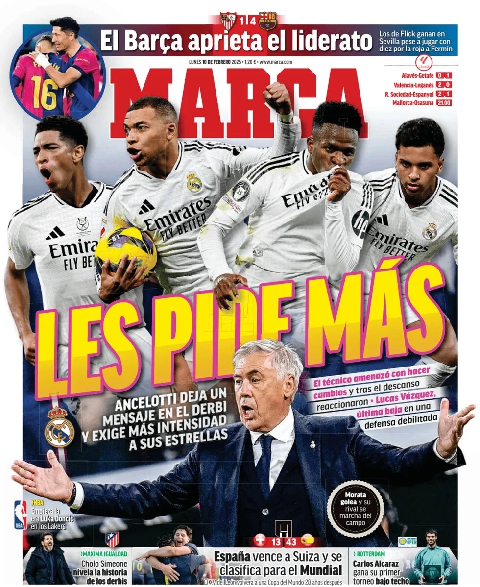 Marca apunta que Ancelotti, quien habría exigido más intensidad a sus estrellas, "amenazó con hacer cambios y tras el descanso reaccionaron los jugadores. Lucas Vázquez, última baja en una defesa debilitada".