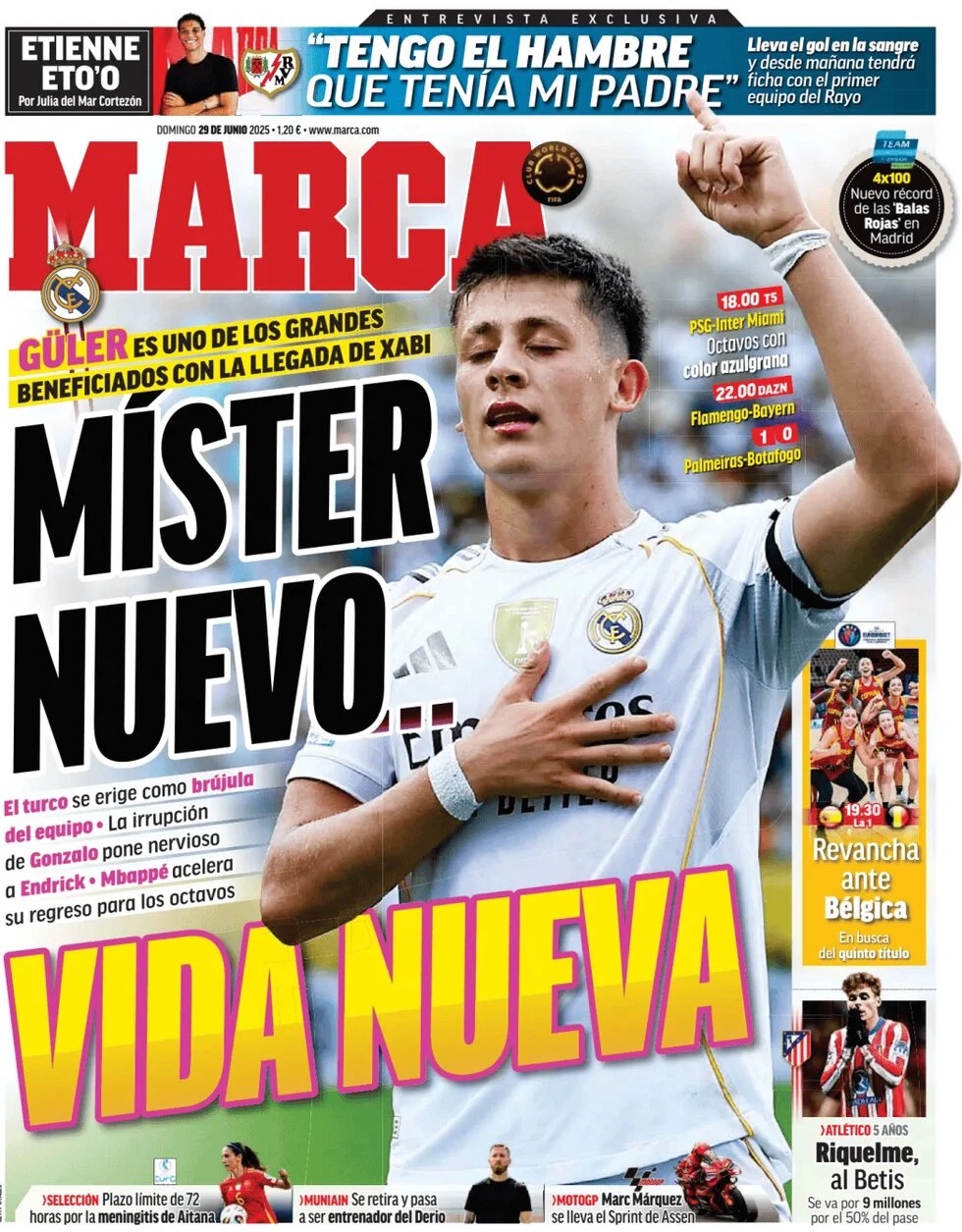 Arda Güler es el protagonista de la portada de Marca: "El turco se erige como brújula del equipo. La irrupción de Gonzalo pone nervioso a Endrick. Mbappé acelera su regreso para los Octavos".