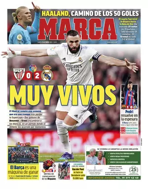 Marca publica que "el Madrid remata una semana que era una trampa tras perder la Supercopa. Dos golazos de Benzema y Kroos encumbran a los blancos, en un partido donde el Athletic los acorraló por momentos".