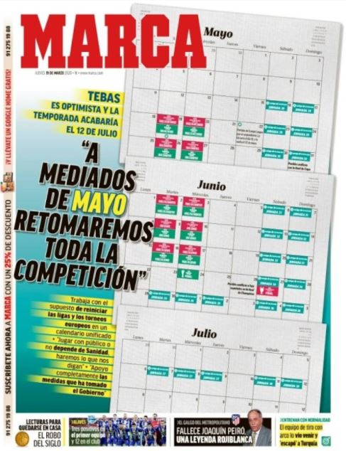 Marca, Tebas: "A mediados de mayo retomaremos toda la competición"