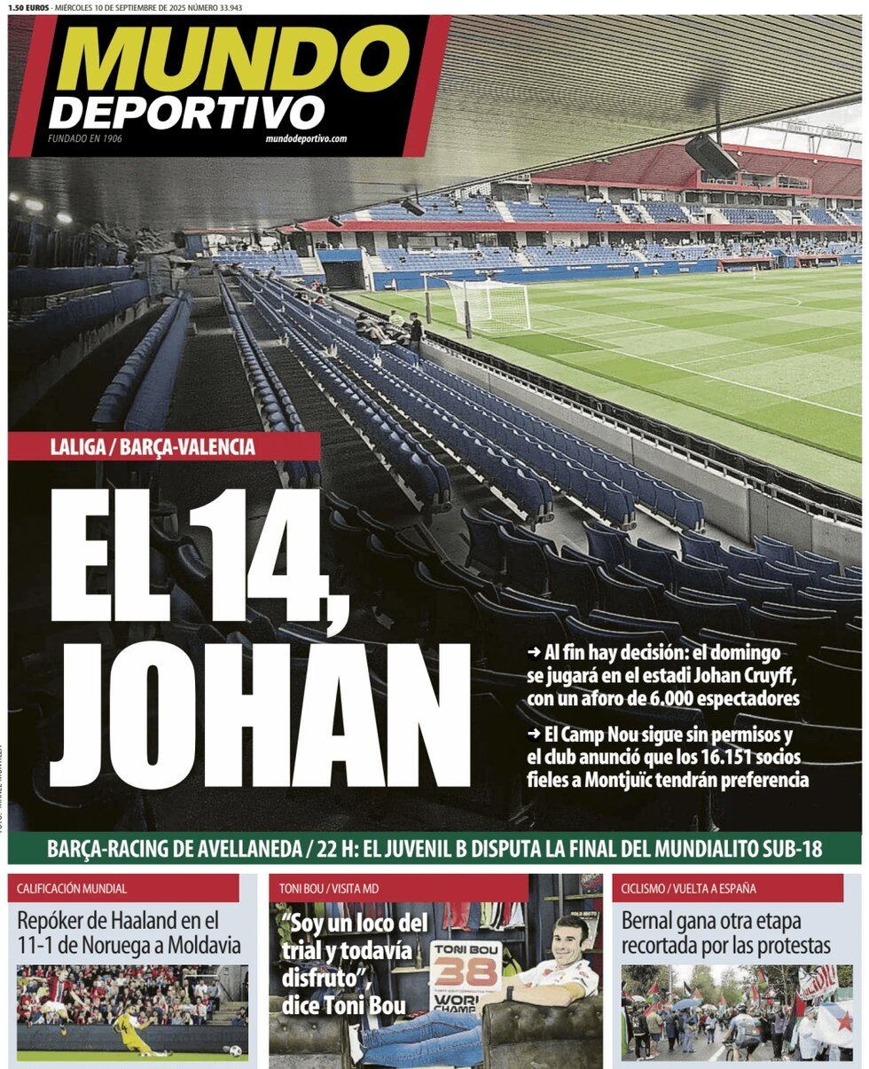 Mundo Deportivo apunta que "al final hay decisión, el domingo se jugará en el estadio Johan Cruyff, con un aforo de 6.000 espectadores. El Camp Nou sigue sin permisos y el club anunció que los 16.151 socios fieles a Montjuïc tienen preferencia".