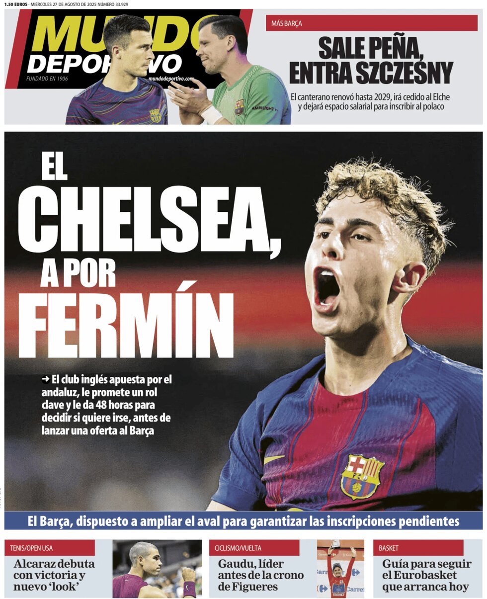 Mundo Deportivo apunta que el Chelsea "apuesta por Fermín López, le promete un rol clave y le da 48 horas para decidir si quiere irse, antes de lanzar una oferta al Barça".