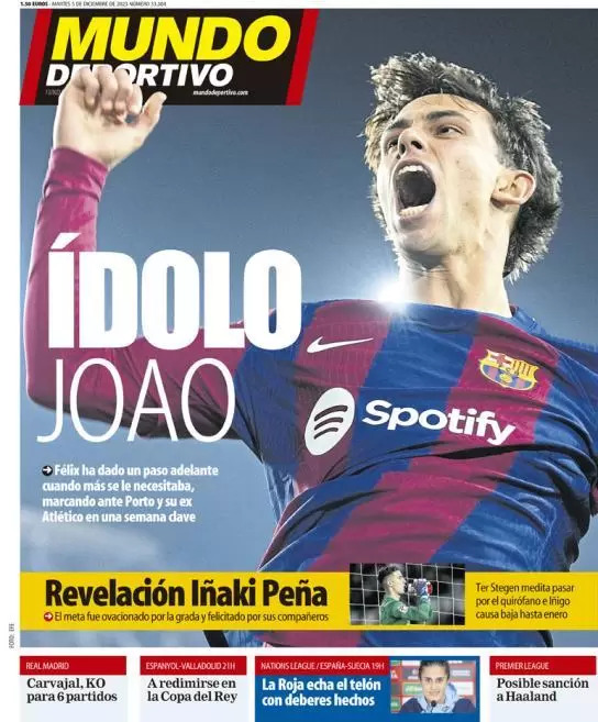 Mundo Deportivo apunta que Joao Félix "ha dado un paso adelante cuando más se le necesitaba, marcando ante Porto y su ex Atlético en una semana clave".