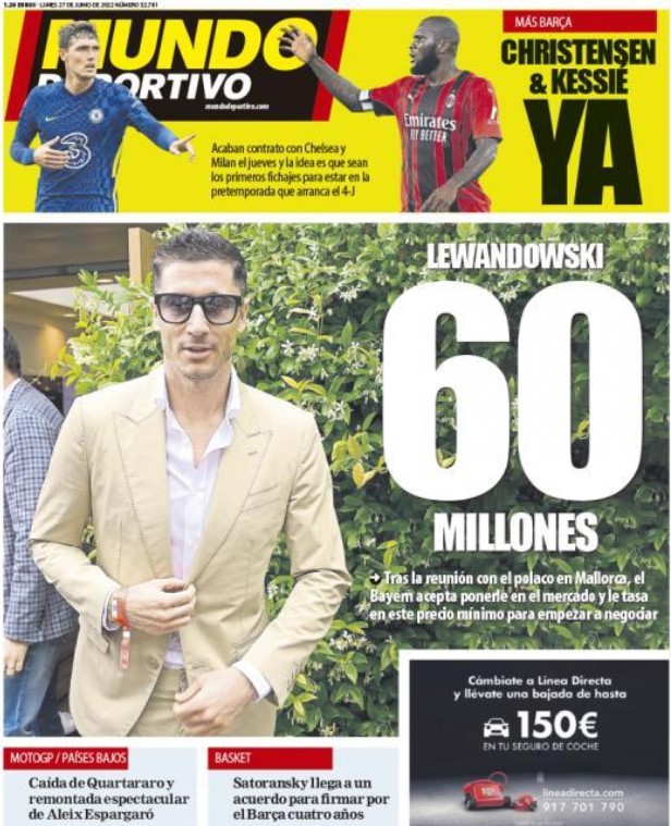 Mundo Deportivo apunta que "tras la reunión con Lewandowski en Mallorca, el Bayern acepta ponerle en el mercado y le tasa en 60 millones como precio mínimo para empezar a negociar".