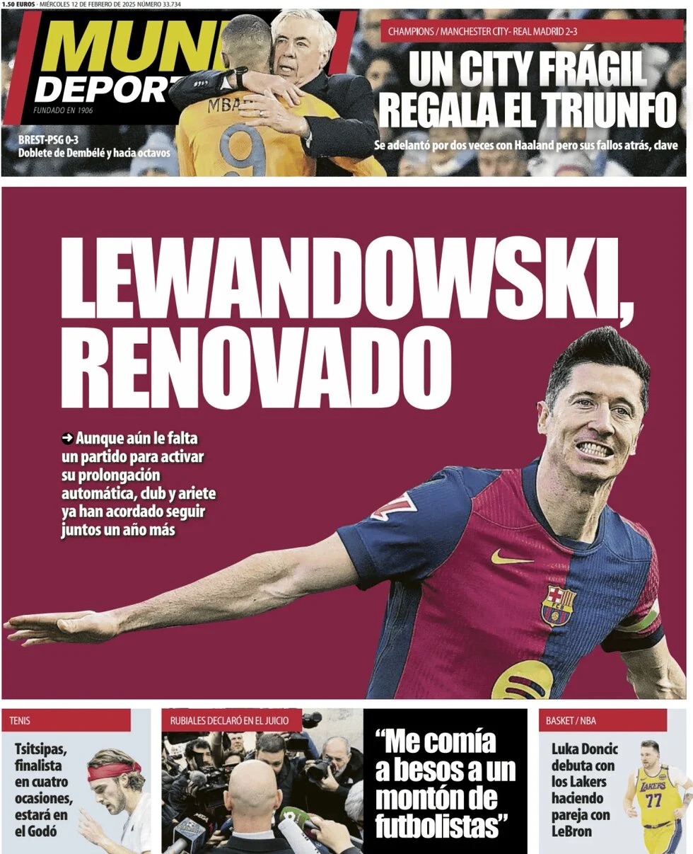Mundo Deportivo publica que "aunque aún le falta un partido para activar su prolongación automática, Barça y Lewandowski ya hay acordado seguir juntos un año más".