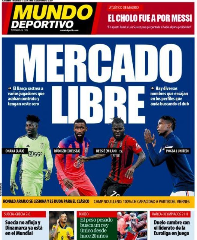 Mundo Deportivo apunta que "el Barça rastrea a varios jugadores que acaban contrato y tengan coste cero. Hay diversos nombres que encajan en los perfiles que anda buscando el Club".