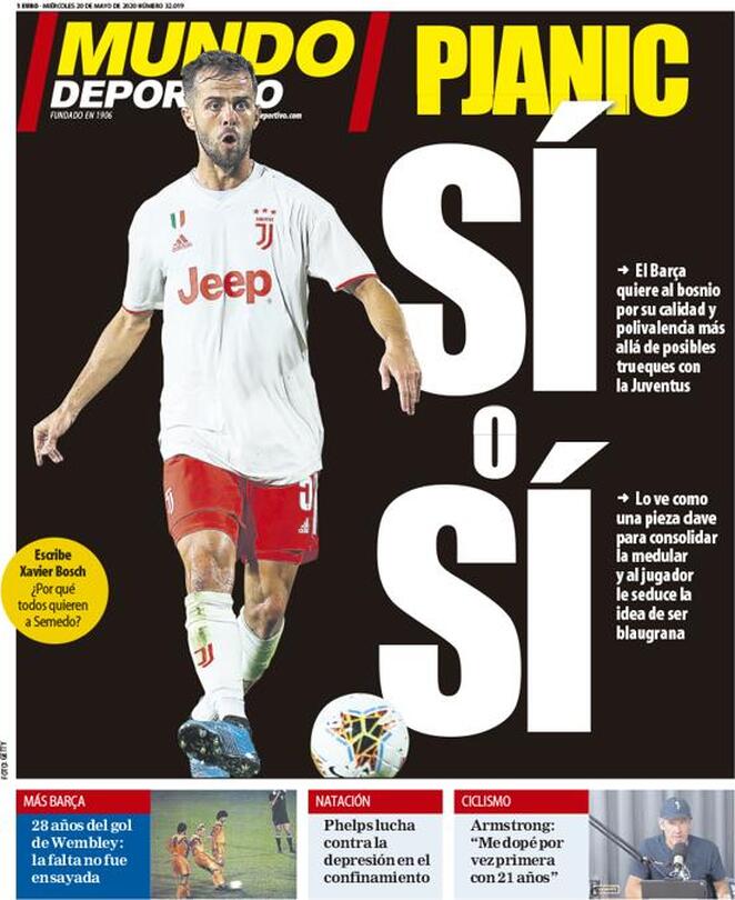 Mundo Deportivo asegura en su portada que "el Barça quiere a Pjanic por su calidad y polivalencia más allá de posibles trueques con la Juventus. Lo ve como una pieza clave para consolidar la medular y al jugador le seduce la idea de ser blaugrana"