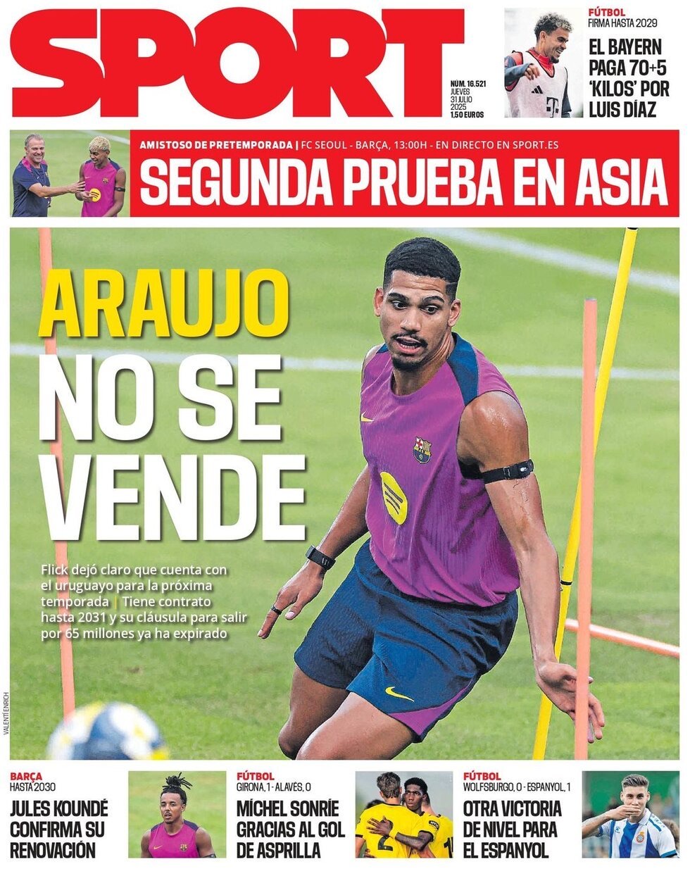 Sport publica que ''Flick dejó claro que cuenta con Araujo para la próxima temporada. Tiene contrato hasta 2031 y su cláusula para salir por 65 millones ya ha expirado''
