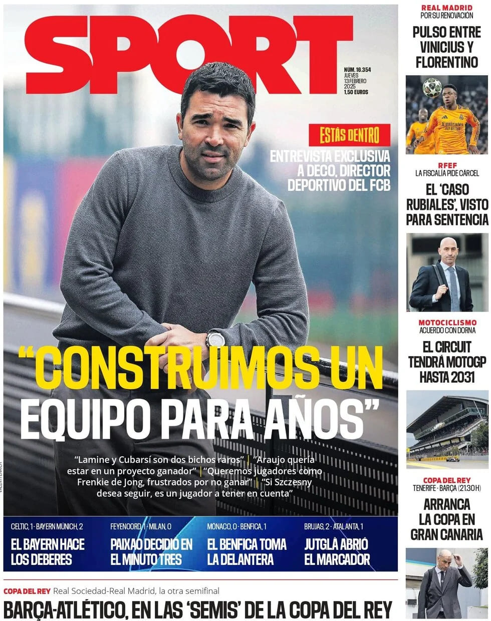 Sport destaca algunas frases de Deco en la entrevista concedida al diario barcelonés: "Lamine y Cubarsí son dos bichos raros. Araujo quería estar en un proyecto ganador. Queremos jugadores como Frenkie de Jong, frustrados por no ganar. Si Szczesny desea seguir, es un jugador a tener en cuenta".