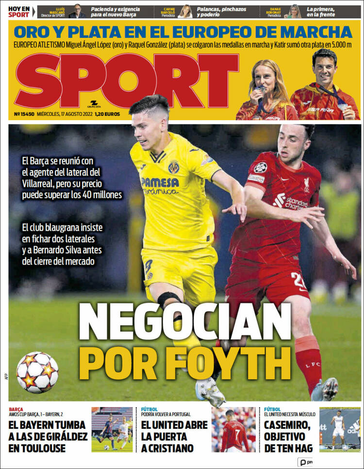 Sport publica que "el Barça se reunió con el agente del lateral del Villarreal, pero su precio puede superar los 40 millones. El club blaugrana insiste en fichar dos laterales y a Bernardo Silva antes del cierre del mercado".