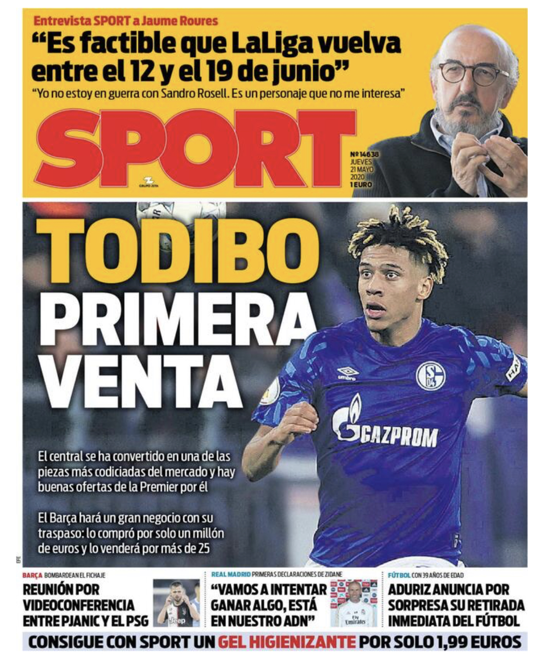 Sport asegura en su portada que "Todibo se ha convertido en una de las piezas más codiciadas del mercado y hay buenas ofertas de la Premier por él. El Barça hará un gran negocio con su traspaso, lo compró por un millón de euros y lo venderá por más de 25", apunta el diario catalán.