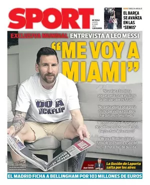 También Sport publica en su portada algunas de las frases de Lionel Messi: "No vuelvo a Barcelona porque quería tomar yo mismo la decisión sobre mi futuro. No quería volver a pasar por lo mismo que viví hace dos años. Fue durísimo y tenía miedo"