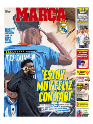 Aurélien Tchouaméni es protagonista de la portada de Marca, que recoge sus palabras en el acto de inauguración de un campo de fútbol con su nombre: "Con Xabi Alonso me va muy bien y aporta cosas nuevas al equipo. Desde el inicio de 2025 todo me iba mucho mejor", explica el madridista.