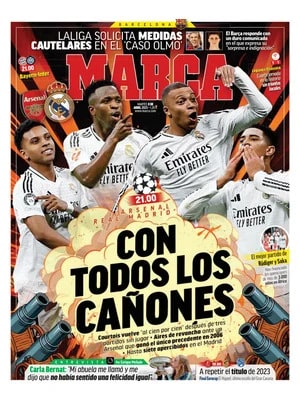 Marca apunta que "Courtois vuelve 'al cien por cien' después de tres partidos sin jugar. Aires de revancha ante un Arsenal que ganó en el único precedente en 2006. Hasta siete apercibidos en el Madrid".