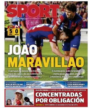 Sport apunta que Joao Félix "fue decisivo ante el Amberes, marcó dos tantos y dio una asistencia en el primer partido de Champions con el Barça. El club blaugrana acabó metiendo una manita gracias a sus goles, uno de Lewandowski, otro de Gavi y uno en propia" puerta.