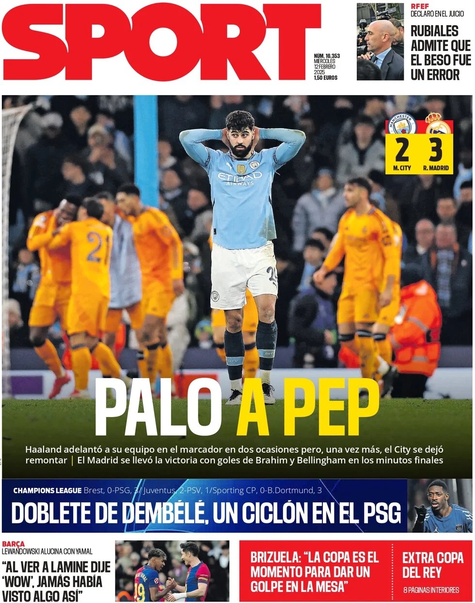 Sport apunta que "Haaland adelantó a su equipo en el marcador en dos ocasiones pero, una vez más, el City se dejó remontar. El Madrid se llevó la victoria con goles de Brahim y Bellingham en los minutos finales".