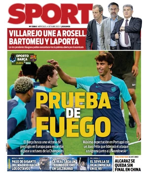 Sport apunta que "el Barça busca una victoria de prestigio en Europa para encarrilar el pase a Octavos de la Champions. Máxima expectación en Portugal con un Joao Félix que liderará el ataque azulgrana junto a Lewandowski".