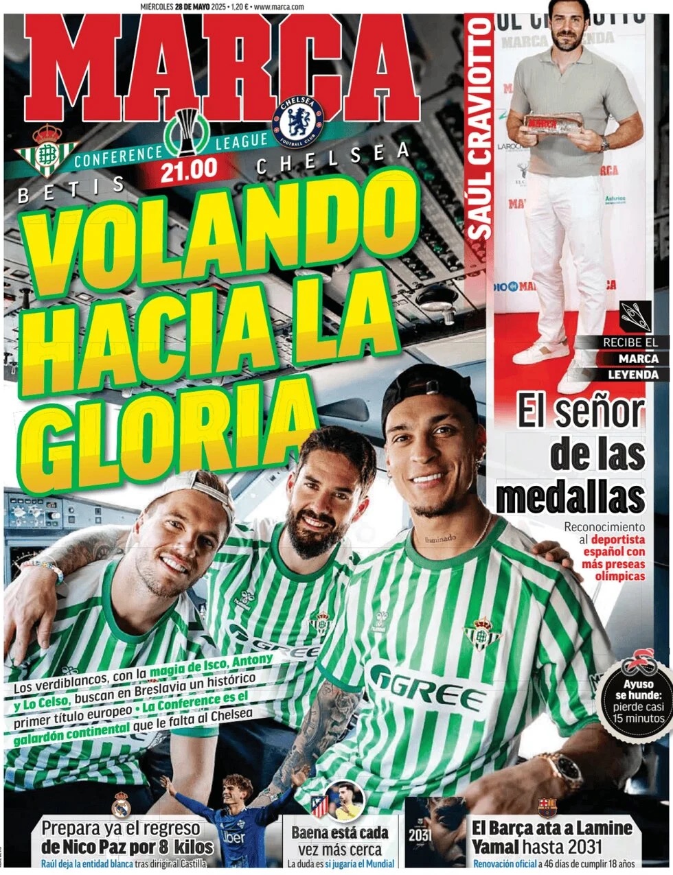 Marca apunta que el Real Betis, "con la magia de Isco, Antony y Lo Celso, busca en Breslavia un histórico primer título europeo. La Conference es el galardón continental que le falta al Chelsea".