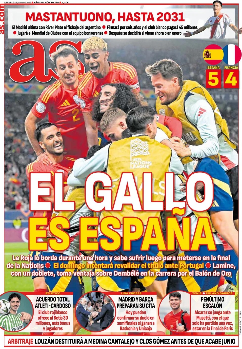 As apunta que “la Roja lo borda durante una hora y sabe sufrir luego para meterse en la final de la Nations. El domingo intentará revalidad el título ante Portugal. Lamine, con un doblete, toma ventaja sobre Dembélé en la carrera por el Balón de Oro“
