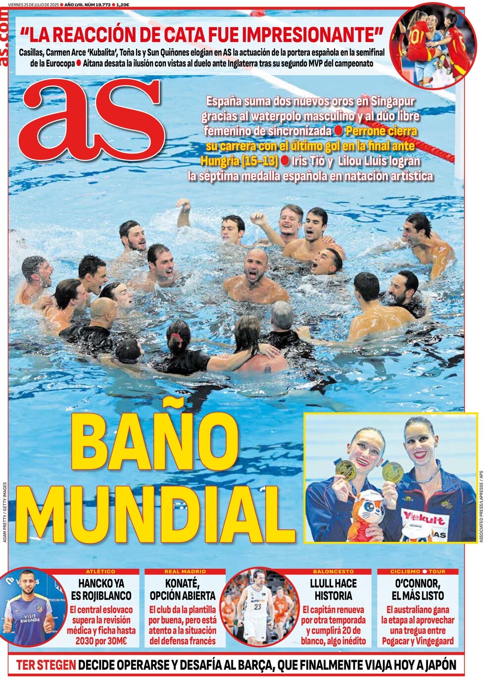 As publica que "Casillas, CArmen Arce 'Kubalita', Toña Is y Sun Quiñones elogian la actuación de Cata Coll en la semifinal de la Eurocopa. Aitana desata la ilusión con vistas al duelo ante Inglaterra tras su segundo MVP del campeonato"