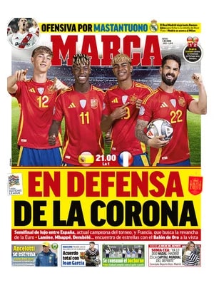 Marca dedica su portada al España-Francia de esta noche: "Semifinal de lujo. Lamine, Mbappé, Dembélé... encuentro de estrellas con el Balón de Oro a la vista".