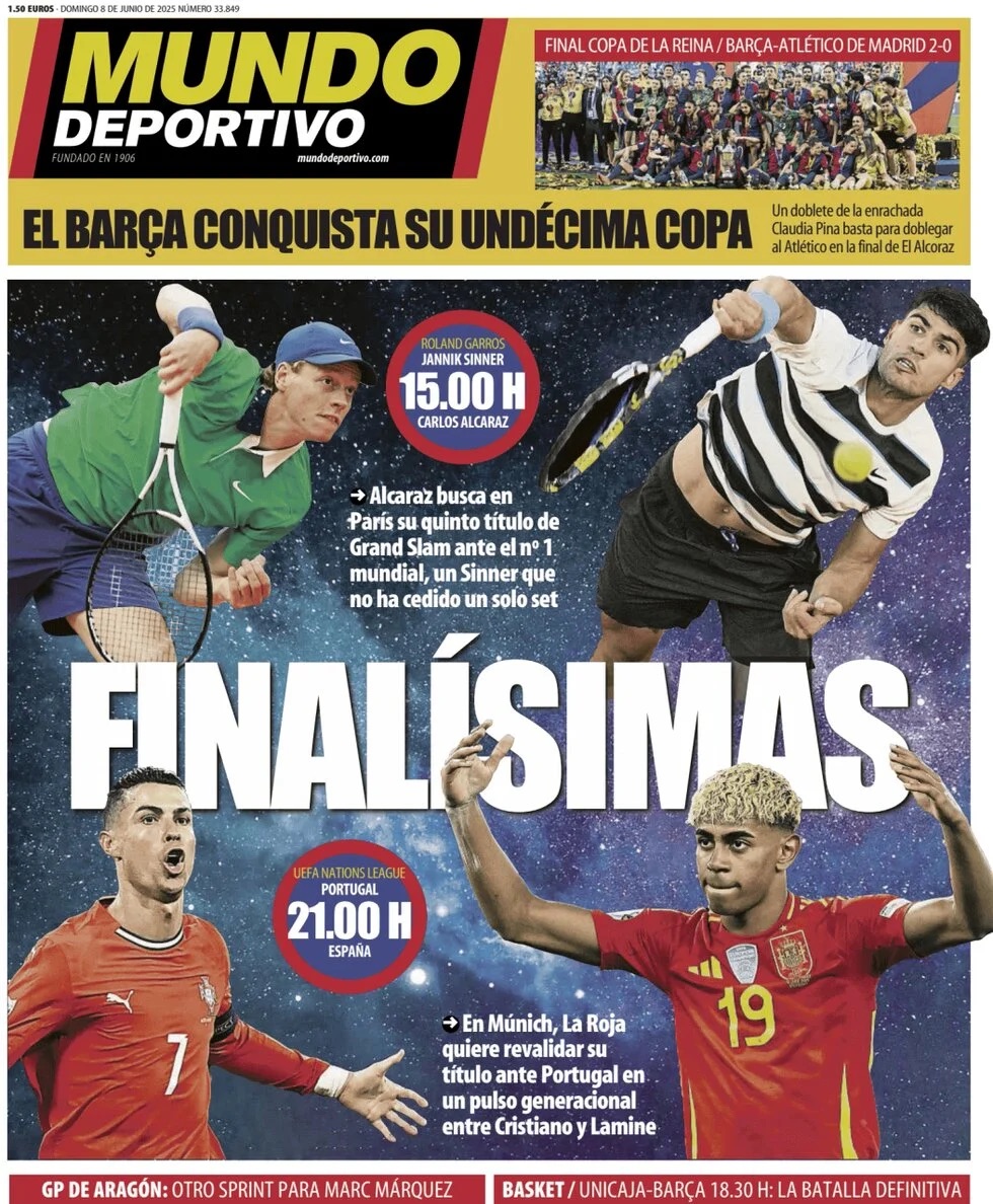 Mundo Deportivo publica en su portada que ”en Munich, La Roja quiere revalidar su título ante Portugal en un pulso generacional entre Cristiano y Lamine”