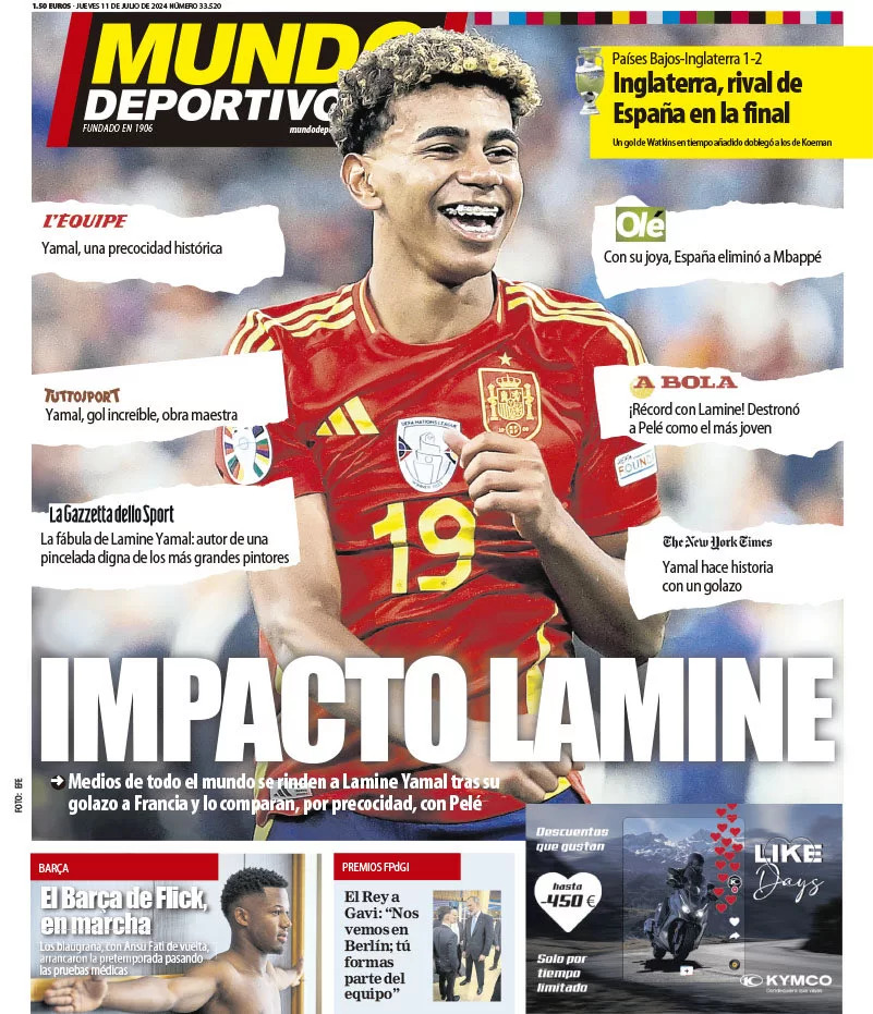 Mundo Deportivo publica que "medios de todo el mundo se rinden a Lamine Yamal tras su golazo a Francia y lo comparan, por precocidad, con Pelé".