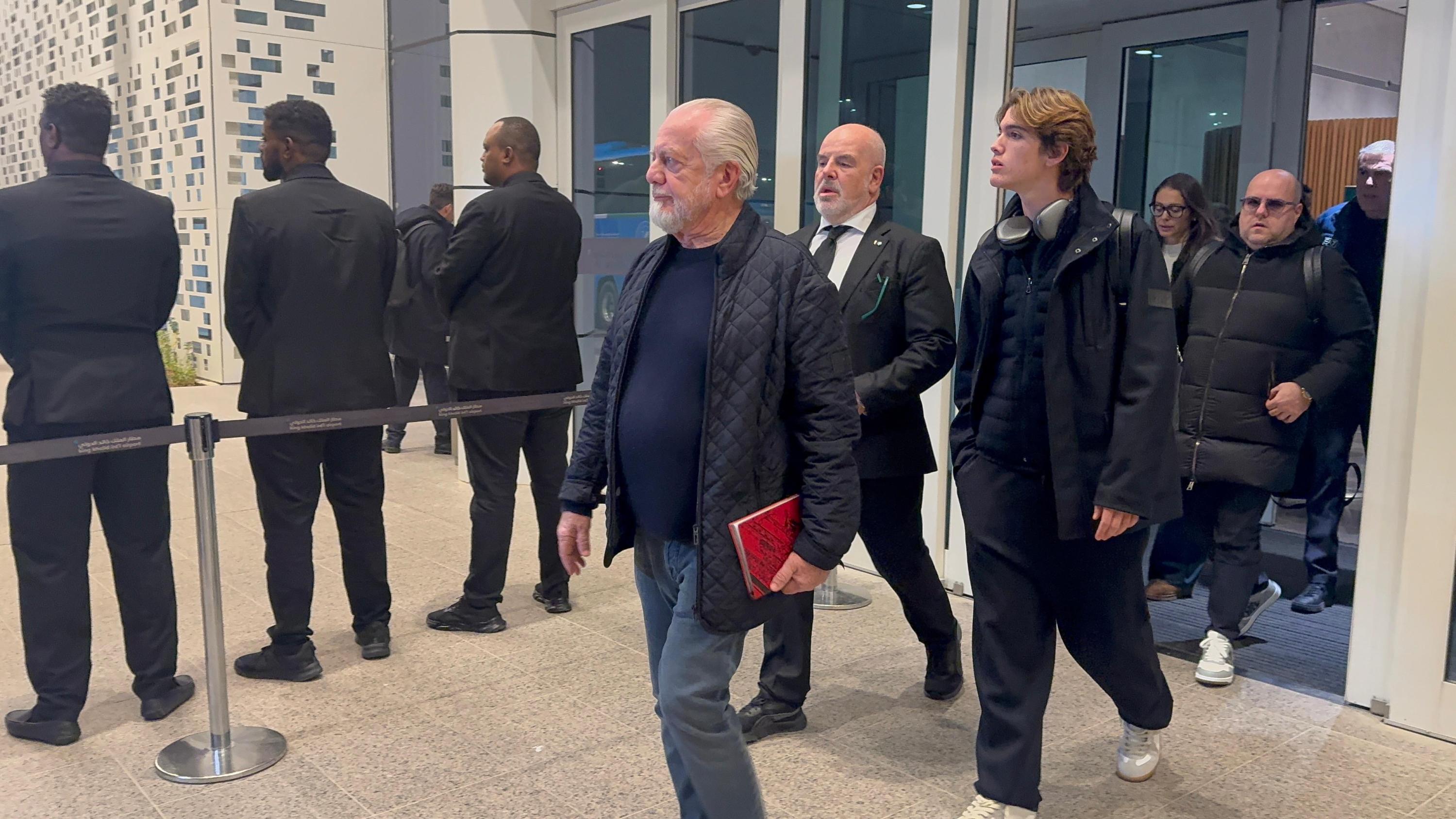 Como estaba previsto, también viajó con el equipo la cúpula del club, encabezada por Aurelio De Laurentiis. Además del presidente, se han desplazado todos los altos cargos de la entidad partenopea. El SSC Napoli está listo para pelear por la Supercopa; ahora habla el césped. Estas son las imágenes recogidas por nuestro enviado.